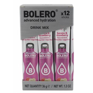 Sticks - Banana & Strawberry in a convenient stick. Just add to 500 ml of water and stir. 1 box contains 12 sticks.