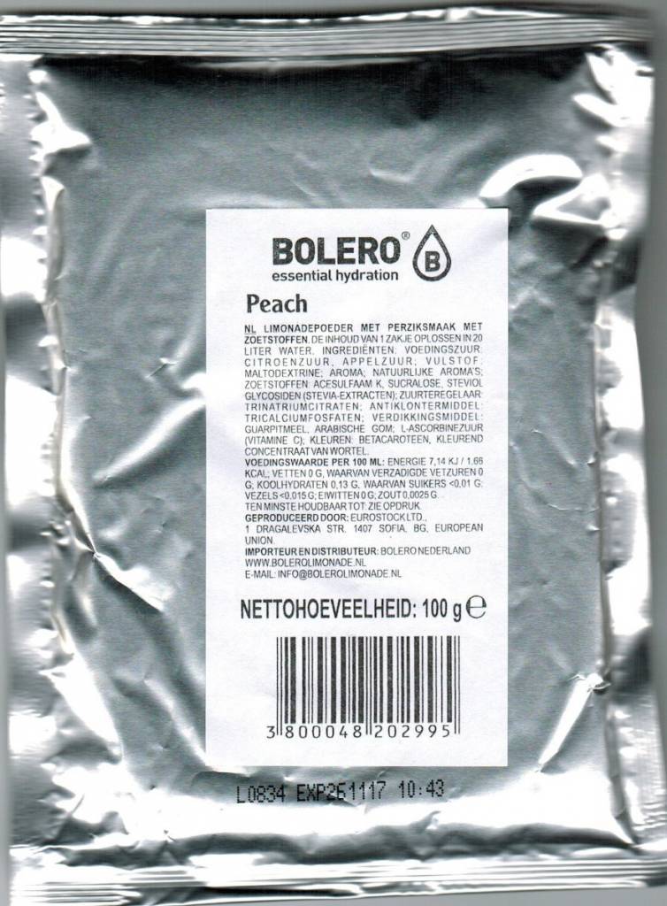 Bolero Perzik met Stevia | 20 Liter
