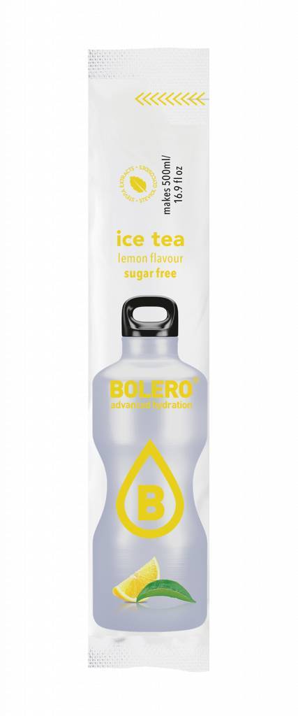 Bolero Sticks - Ice Tea Lemon de smaak van heerlijke citroen in een handige stick. De citroen staat bekend om zijn frisheid en energie opwekkend vermogen. Geniet van de smaak van Bolero Ice Tea citroen en geef uw dag direct een boost. Verfrissend, smaakvol en lekker zonder suiker. Probeer het nu! Elke stick is goed voor de aanmaak van 500 ml Bolero. Handig voor onderweg, op school of tijdens het sporten. 1 doosje bevat 12 sticks.
